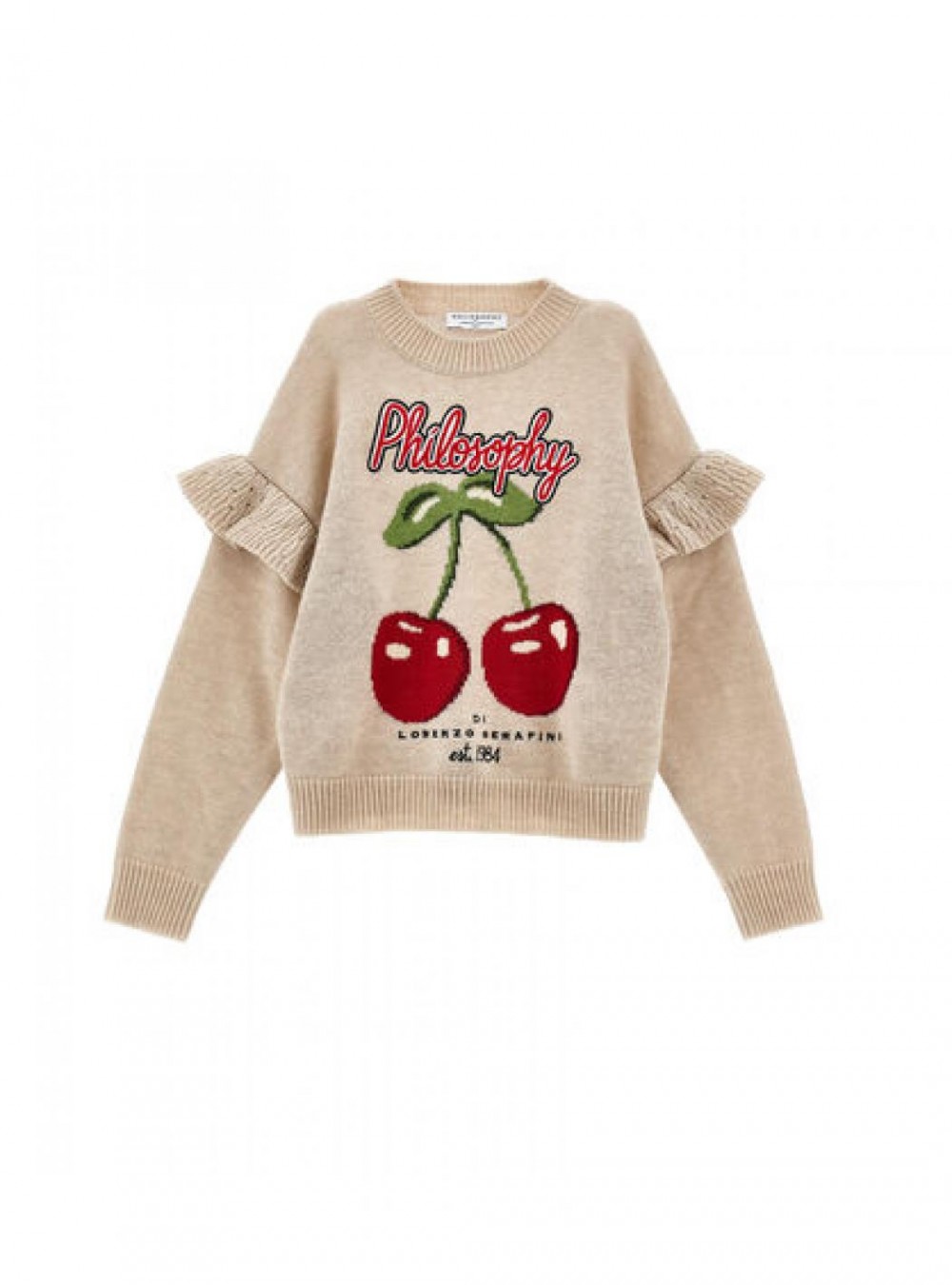 - Maglione con stampa di ciliegie e logo 'Philosophy di Lorenzo Serafini est.1984'.